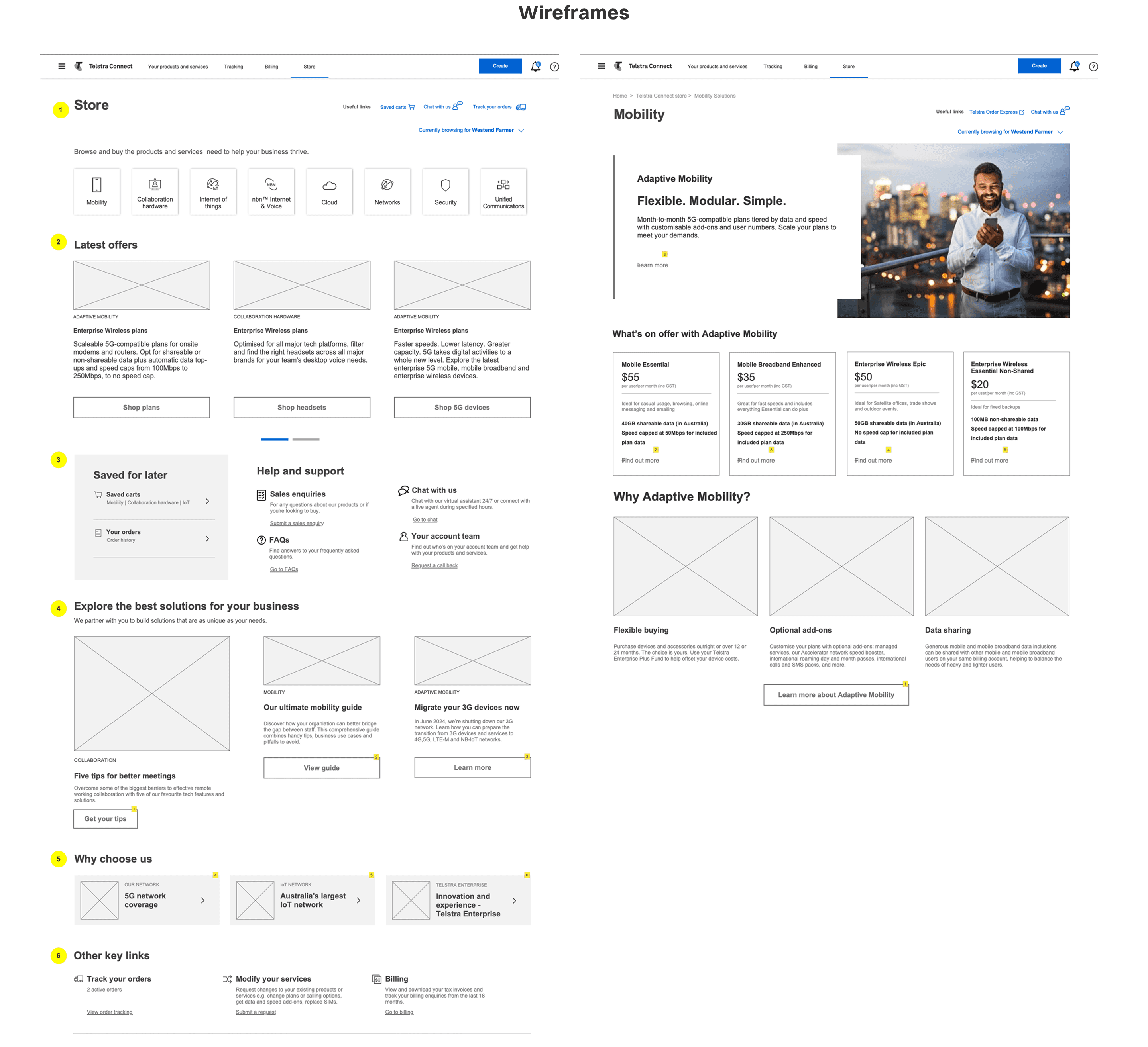 Create a landing page for the Telstra Connect store that allows users to act, view all products with digital journeys, and create a lead using Sales support for all other enterprise products.