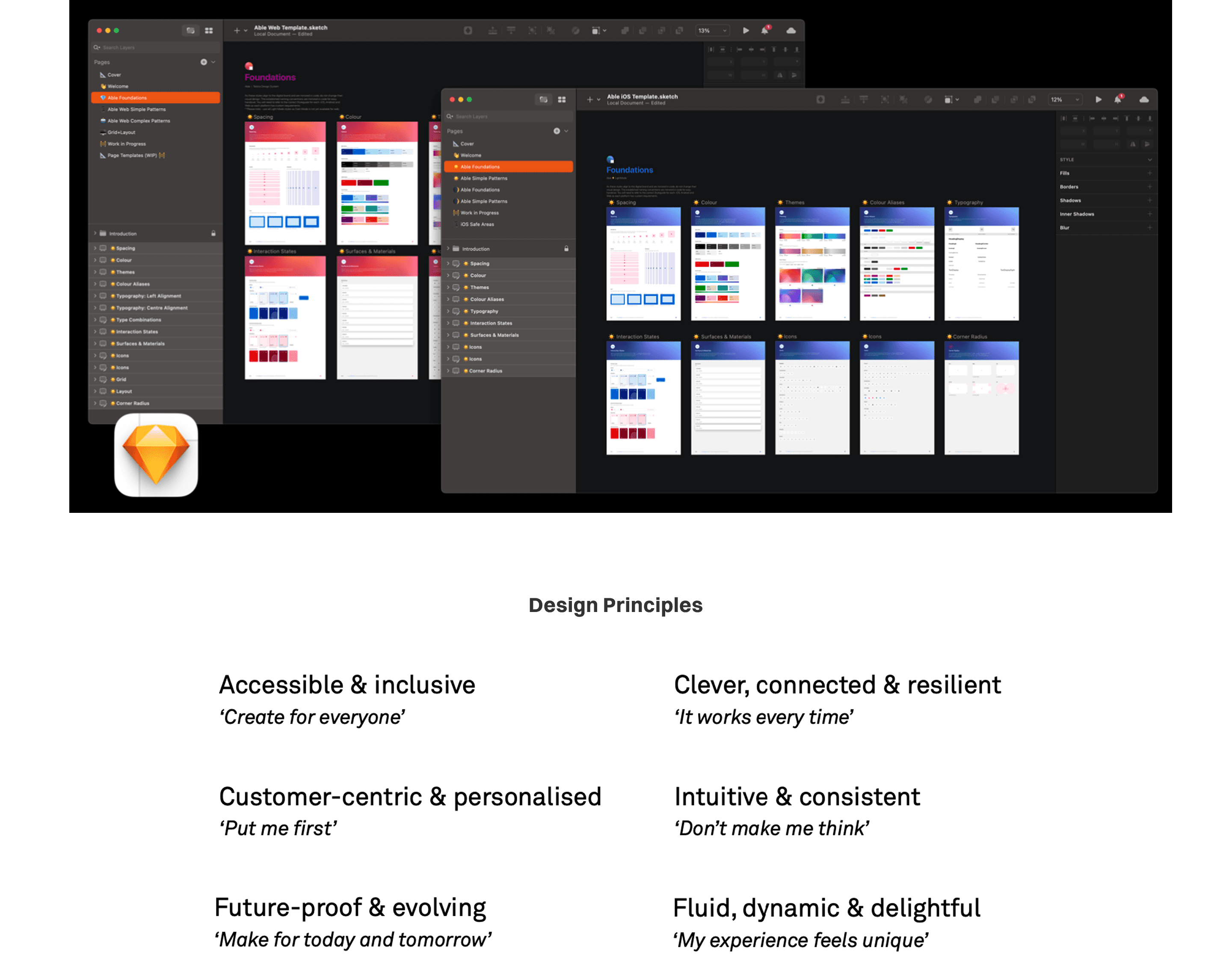 To touch upon the style guide, we based it on the ABLE Design System from Telstra. It's a user-centered approach aimed at creating even more user-friendly products. This system includes design assets, code, and principles that we use to guide our designs, and it's always evolving.